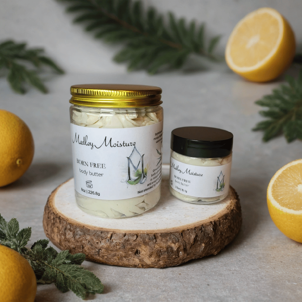 The freedom to feel clean, confident, and grounded now comes all in one smooth touch. Born Free Body Butter melts into your skin, locking in deep hydration while releasing waves of fresh lemon and cool cardamom that awaken the senses!