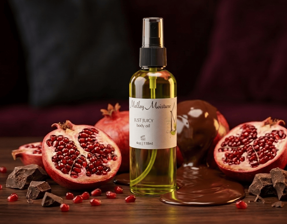 Our Just Juicy Body Oil is a silky, fast absorbing blend of plant based oils that are combined and designed to lock in moisture, enhance your natural glow, and leave skin feeling nourished, not slick.