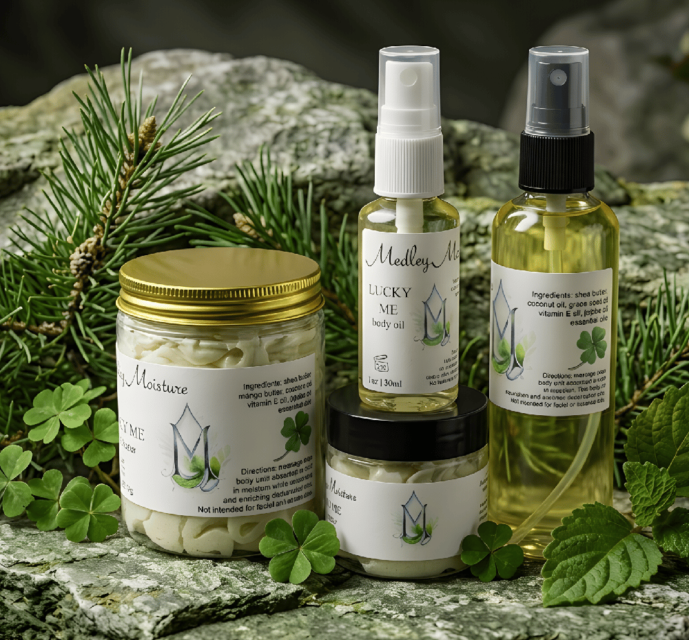 This bundle pairs the Lucky Me Whipped Body Butter with the Body Oil for the ultimate plant-based hydration routine.